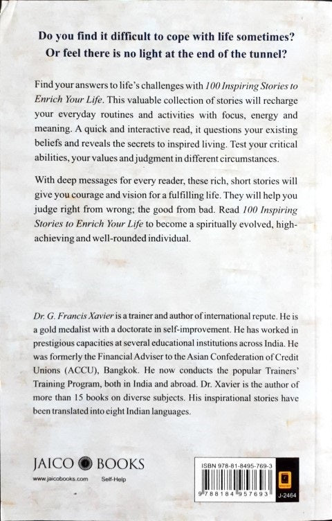Find your answers to lifes challenges with 100 Inspiring Stories to Enrich Your Life. This valuable collection of stories will recharge your everyday routines and activities with focus, energy and meaning. A quick and interactive read, it questions your existing beliefs and reveals the secrets to inspired living. Test your critical abilities, your values and judgment in different circumstances.