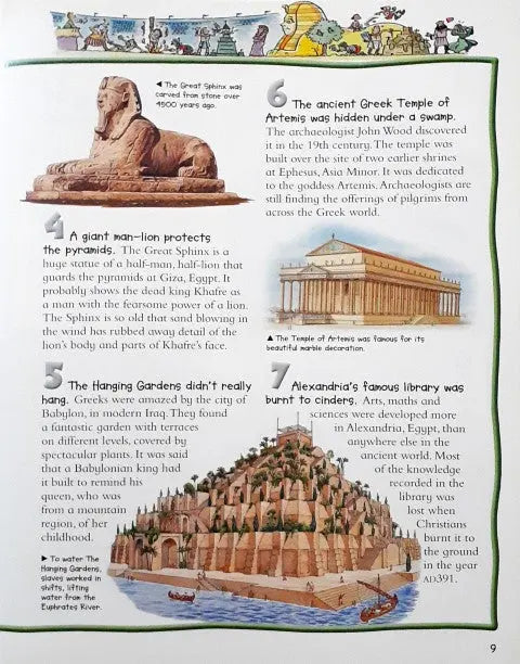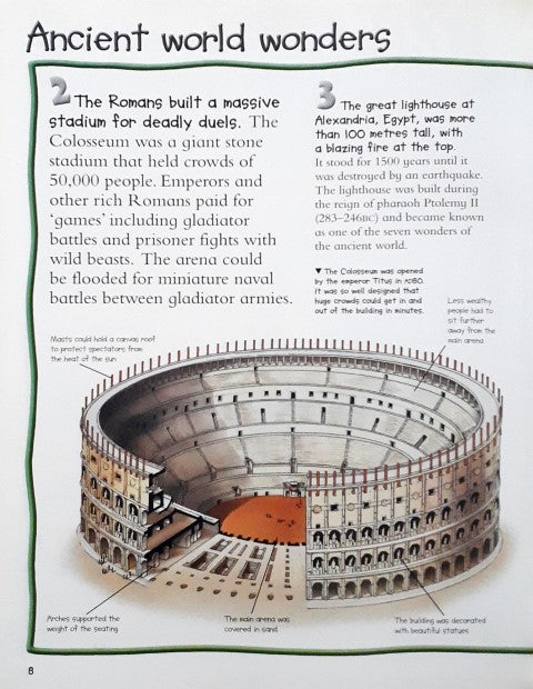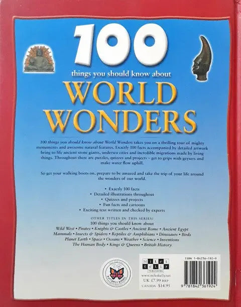 It takes you on a thrilling tour of mighty monuments and awesome natural features. Exactly 100 facts accompanied by detailed artwork bring to life ancient stone giants, undersea cities and incredible migrations made by living things. Throughout there are puzzles, quizzes and projects get to grips with geysers and make water flow uphill. So get your walking boots on, prepared to be amazed and take the trip of your life around the wonders of our world.