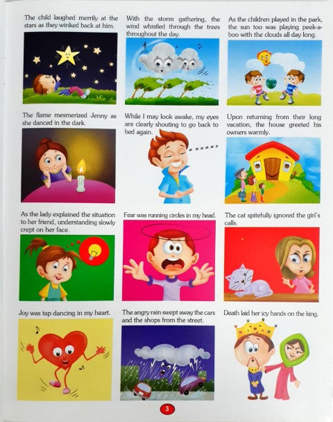Personification is a figure of speech in which a thing, an idea or an animal is given human attributes. Simply put, personification allows the writer to transfer human behaviour and actions to non human objects, giving them the ability to act like human beings. This book has compiled together more than 1001 simple sentences of personification that are best described with lively illustrations. This book helps one to understand personification and apply it in everyday life.
