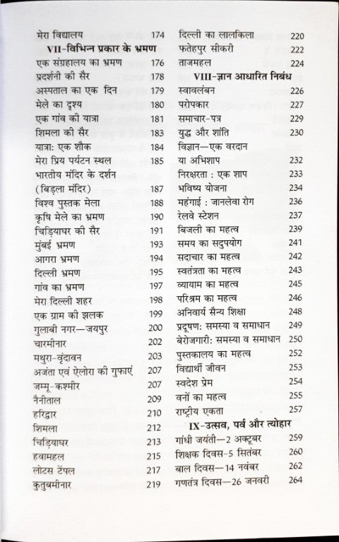 This book gives it's readers the best of 201 Hindi essays classified under various themes