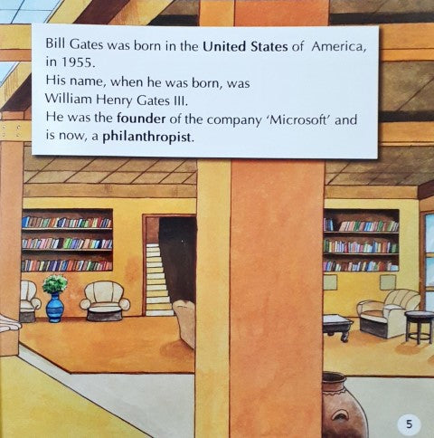 Simple & easy text for young kids with attractive colourful illustrations describing the achievements & life story of Bill Gates