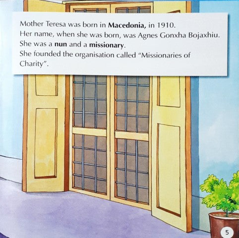 Simple & easy text for young kids with attractive colourful illustrations describing the achievements & life story of Mother Teresa