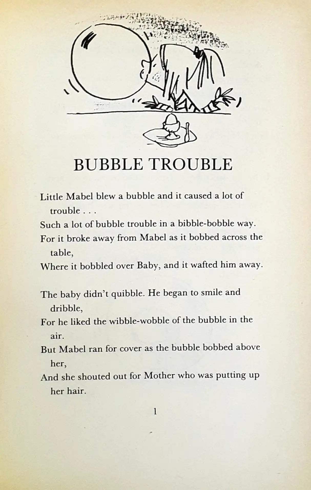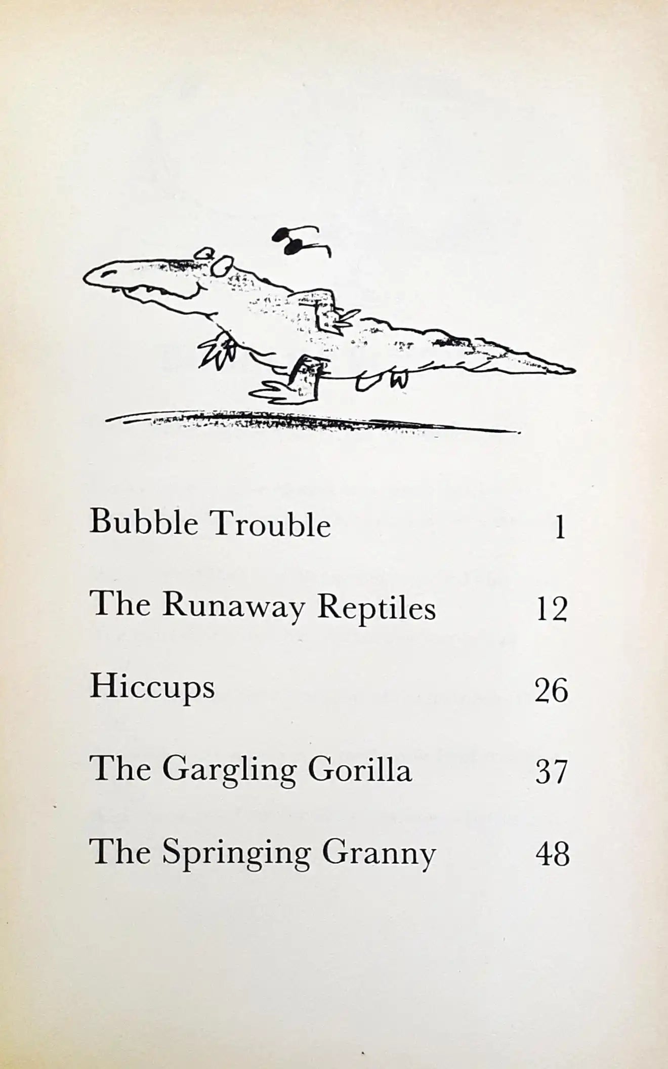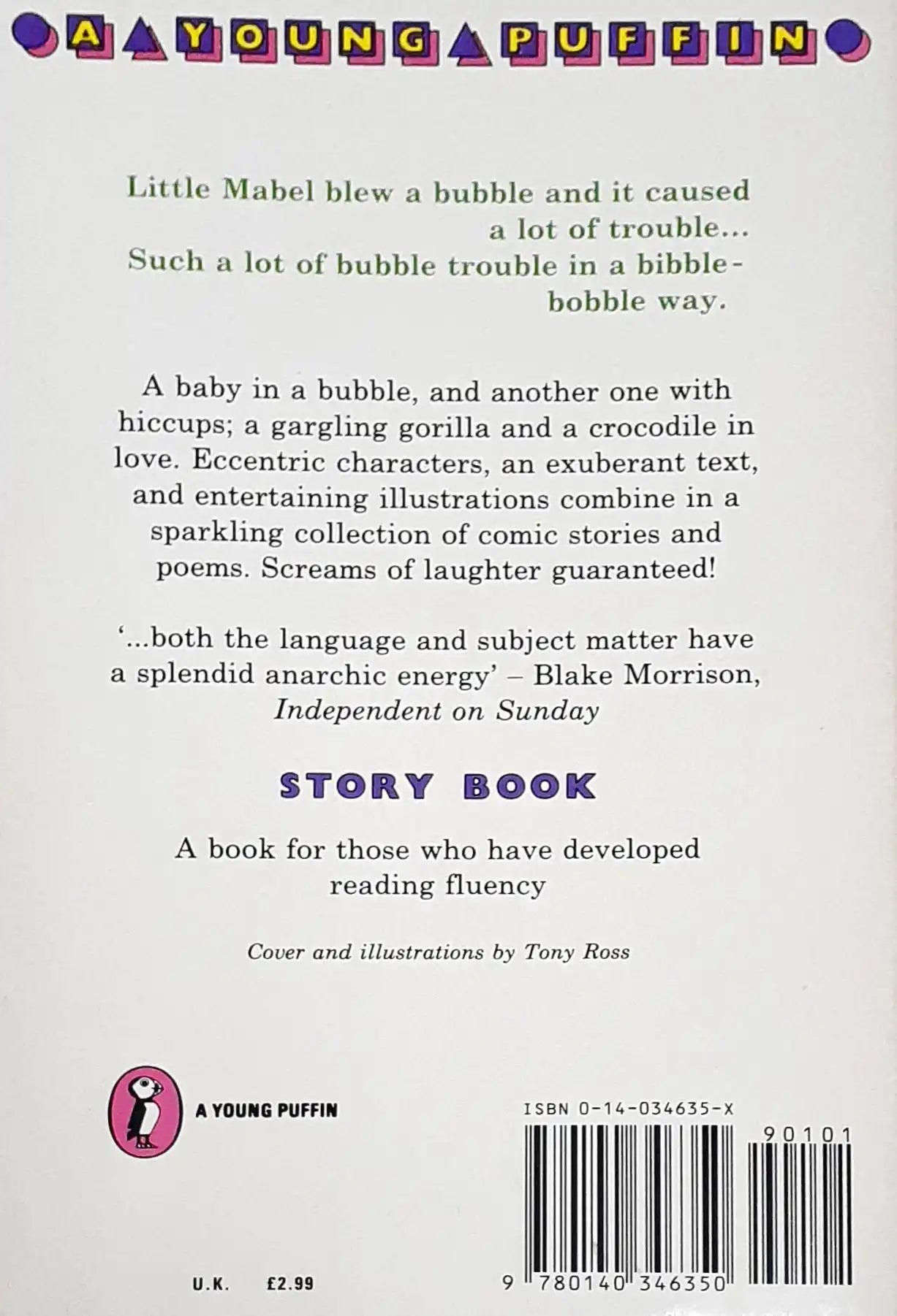 A baby in a bubble and another one with hiccups, a gargling gorilla and a crocodile in love. Eccentric characters, an exuberant text and entertaining illustrations combine in a sparkling collection of comic stories and poems. Screams of laughter guaranteed. ISBN 9780140346350