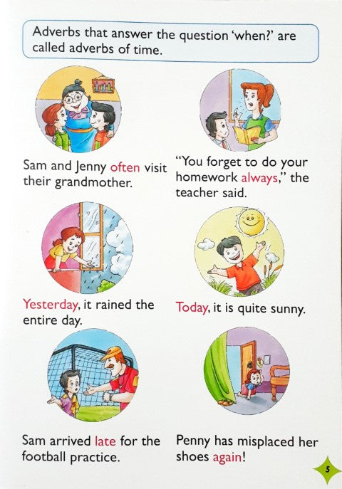 This pictorial book simplifies concepts and helps the child imbibe them in the process of reading. Every grammatical concept has been made self explanatory by the words highlighted for easy understanding. The colourful and simple illustrations make these books engaging and fun