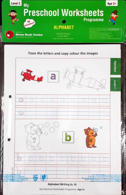 16 Worksheets with multiple exercises to help 5+ year olds strengthen Alphabets