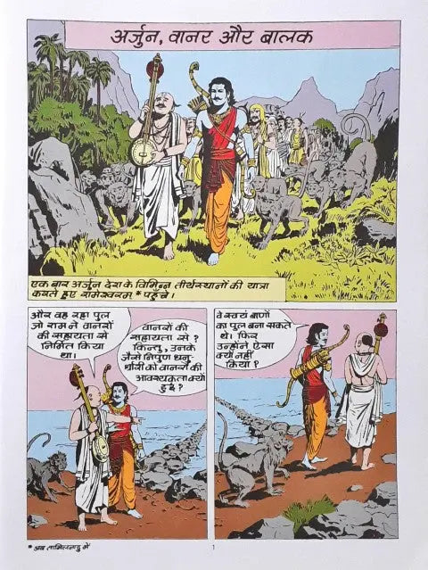 In one such folk tale, the mighty Hanuman from the Ramayana, possessing the ability to change his size at will and traverse great distances in the blink of an eye, encounters Arjuna, the valiant hero of the Mahabharata, renowned for his exceptional archery skills and an endless arsenal of arrows. This meeting serves as a thrilling test of their respective powers, sparking the imagination of those who hear the tale.