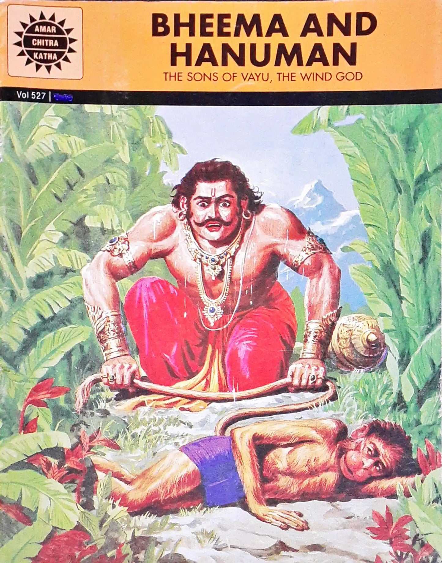 Bheema and Hanuman Amar Chitra Katha, Mahabharata stories for kids, Indian mythology comics, Hanuman stories for children, Bheema and Hanuman encounter, Amar Chitra Katha Vol. 527, mythological tales India, comics on Hindu epics