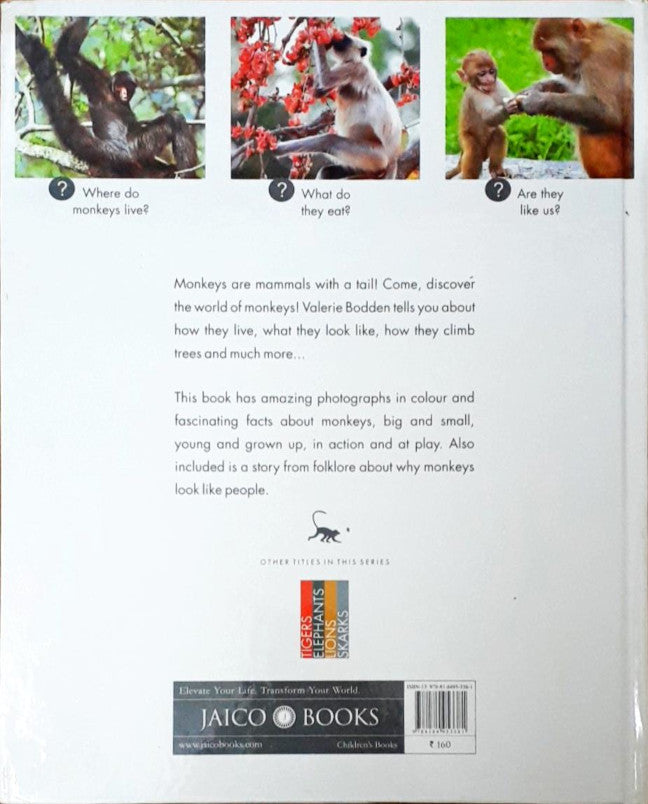 A basic exploration of the appearance, behavior, and habitat of monkeys, a family of tree-climbing mammals. Also included is a story from folklore explaining why monkeys look like people.