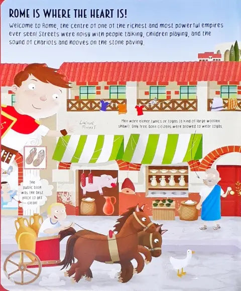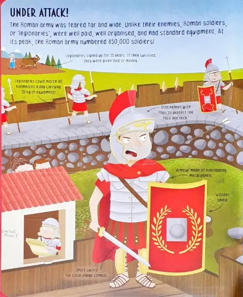 Embark on a captivating voyage through history and meet the Romans in this enlightening lift-the-flap book! Delve into the secrets of ancient Rome as you ponder questions such as "How big was the Roman Empire?" and "Why was the Roman Army so fearsome?". Each engaging scene is teeming with facts and incorporates interactive flaps that breathe life into history. Immerse yourself in the world of the Romans, pose questions, and unveil the answers in this interactive and educational exploration of an ancient civilization!