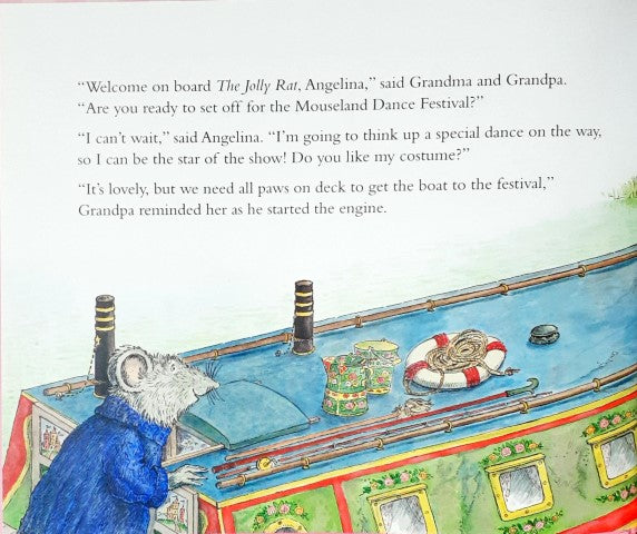 Angelina and her grandparents are traveling by boat to the Mouseland Dance Festival! Angelina can't wait to perform, and she's so busy practicing her steps that she has little time to help her grandparents with all the work that needs to be done on board. When she disobeys her grandmother and ruins her festival costume, Angelina's is devastated--until Grandma shows her what it truly means to be the star of the show.