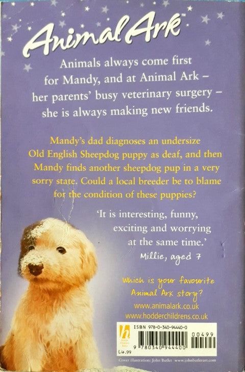 When Mandy's dad diagnoses an Old English Sheepdog puppy as deaf, Mandy feels sorry for it. But it isn't until she finds another Sheepdog puppy weak and abandoned that she and James begin to get suspicious. Could a local breeder be mistreating these poor puppies? It's up to Mandy and James to save them!
