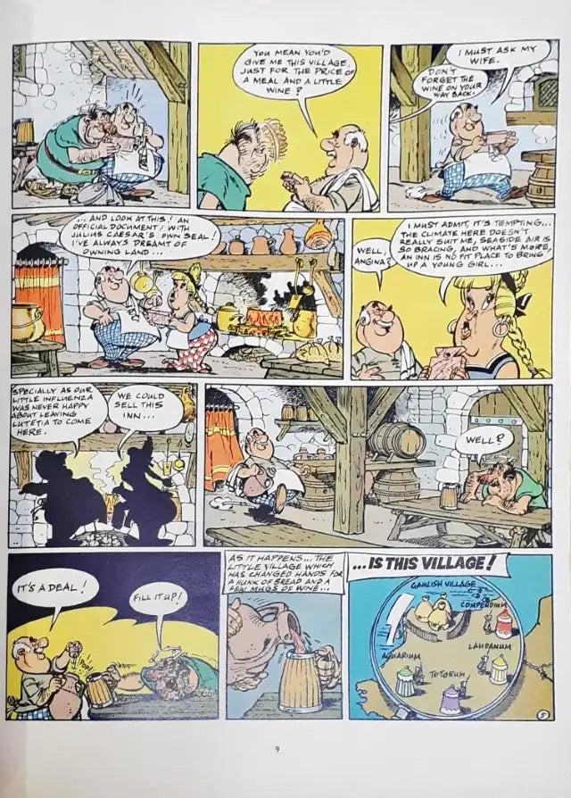 In ASTERIX AND CAESAR'S GIFT, Legionary Tremensdelirius gets the title deeds to the Gaulish village as a bonus - then swaps them with tavern landlord Orthopaedix for a drink. But Asterix and his friends aren't keen to hand over their village!