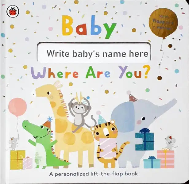 Personalize this delightful story by adding your baby's name to the cover! Simply pull out the slot-in card, write your baby's name, and slide it back in to make your little one a part of this charming search-and-find adventure.