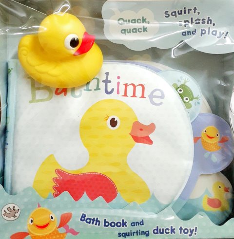 Bath book and squirting duck toy. Turn bathtime into playtime with this book and toy set. Squirt and dunk Little Duck and meet his splashy friends