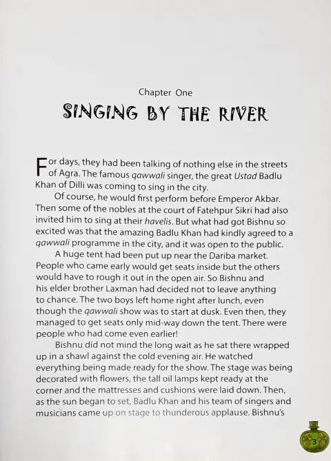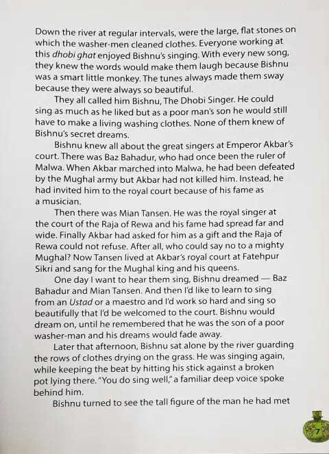 Bishnu is a washerman's son who loves to sing. Fortune favours him as he meets Tansen, the greatest musician in the land and becomes his disciple. Walk the streets of Fatehpur Sikri in this charming musical tale and meet Emperor Akbar and the Navratnas. History comes alive as you share Bishnu's wonder.