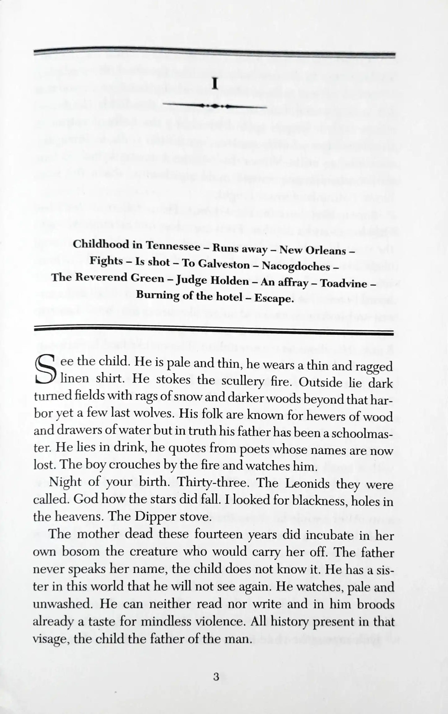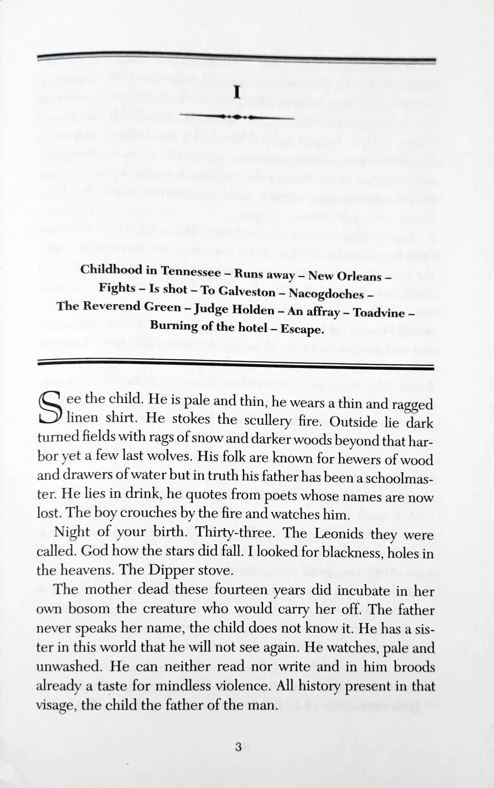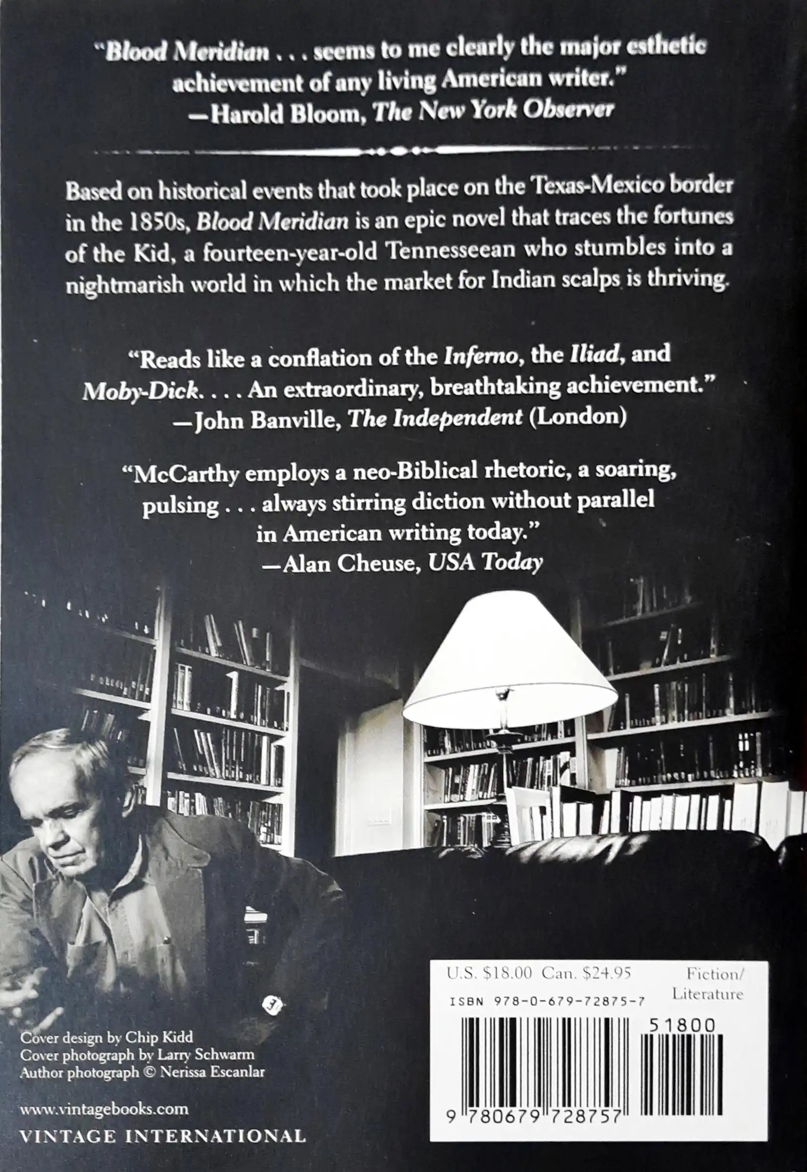 Blood Meridian is a haunting and powerful novel that reimagines the Western frontier with brutal honesty. Set along the Texas-Mexico border in the 1850s and inspired by real historical events, it follows the journey of the Kid, a fourteen-year-old drifter from Tennessee, who is drawn into a savage world of mercenaries and scalp hunters. As he moves through a lawless land soaked in blood and violence, the novel strips away the romanticism of the Wild West, revealing a stark and unforgiving portrait of America's expansion. Raw, lyrical, and unflinching, Cormac McCarthy’s masterpiece is a landmark in American literature.