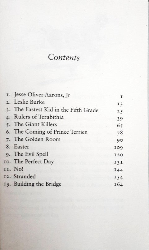 Jesse Aarons wants to be the fastest boy in the class, but when Leslie Burke moves into the neighbouring farm his life changes forever. Even though she runs faster than him, Jesse thinks Leslie is all right- she's clever, funny and has good ideas. It is Leslie who invents Terabithia, the secret magical kingdom on an island across the creek where Jesse can escape his troublesome family. But one day tragedy strikes and Jess needs to find the courage to overcome his fears..