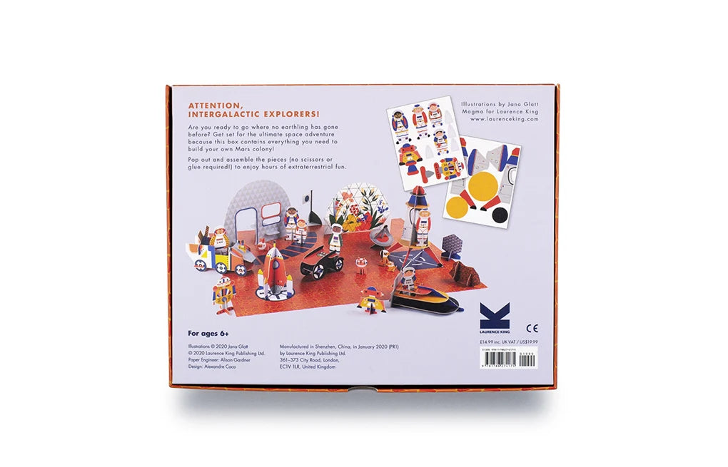 SEO Keywords: Mars colony kit for kids, space activity set children, build your own Mars playset, STEM activity for kids, Jana Glatt illustrated play kit, space toys for 5+