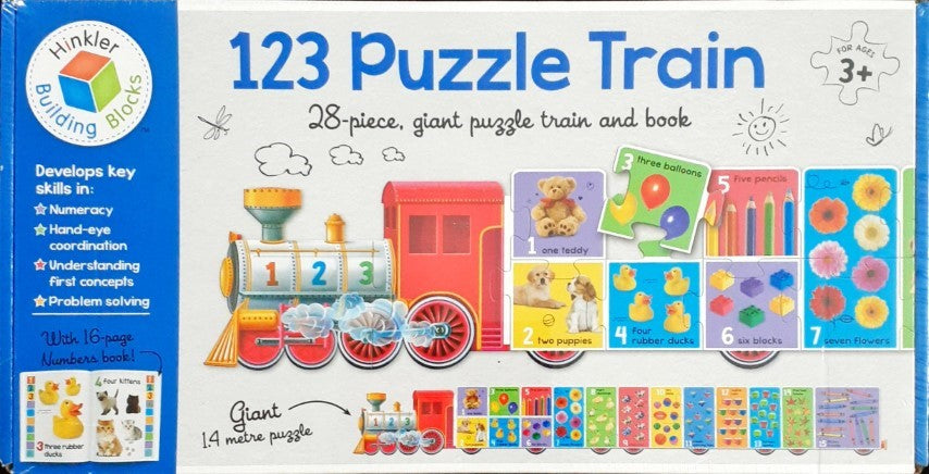 This sturdy full colour 28-piece 123 Puzzle Train comes with a 16 page book ideal for little hands and curious minds. Young children will develop key skills in numeracy, hand-eye coordination and problem solving that parents and children can use together. Product Size 380 x 190mm