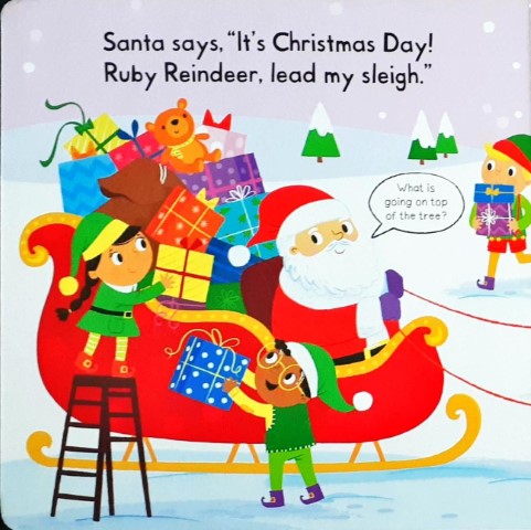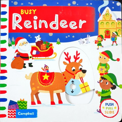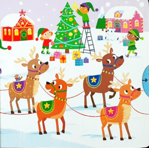 A first, festive novelty board book about a Busy Reindeer, with push, pull and turning mechanisms. With lots to see in Busy Reindeer, children can have fun pulling, pushing and turning the mechanisms as they read about Ruby Reindeer's Christmas journey. Join Ruby Reindeer as she flies through the sky and helps Santa deliver Christmas presents. Children will love playing with this bright and colourful board book with gentle rhyming text and wonderful illustrations by Samantha Meredith.