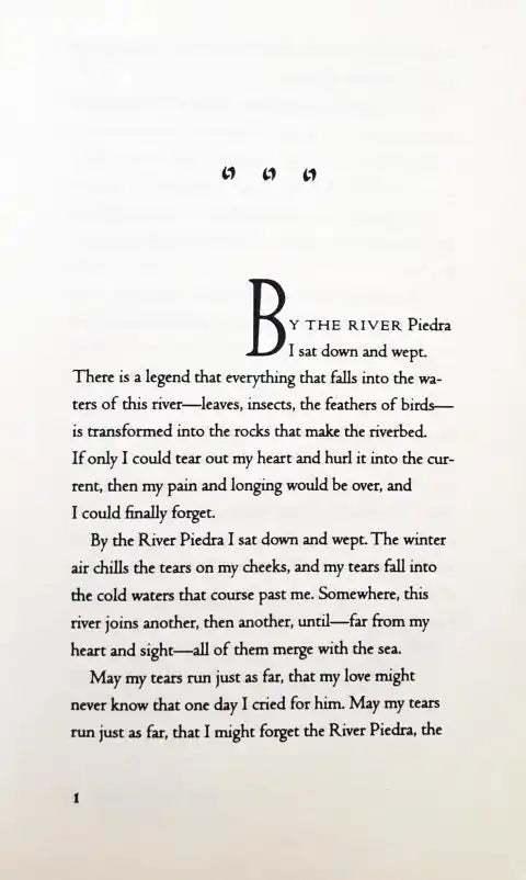 Paulo Coelho’s By the River Piedra I Sat Down and Wept is a poignant and poetic story that talks about the depth of love and life and includes elements of paganism and female aspect of divinity. An independent young woman named Pilar is the story's protagonist. She is tired of her life at the university and is searching for the true purpose of life.