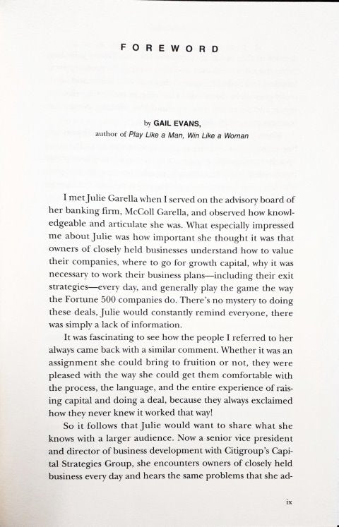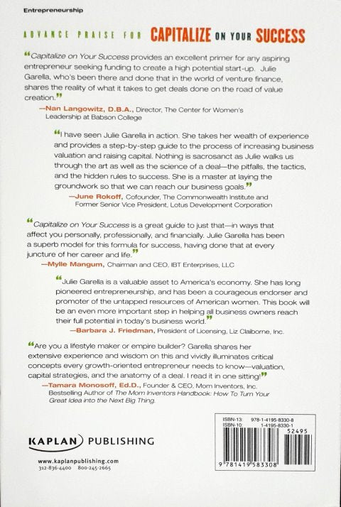 Growing a business you can sell, putting a deal together to buy another company or taking on outside capital to foster growth all require a certain know how in terms of language, preparation and process. Rarely do business owners use the resources and strategies that have been tried and tested by major companies and brands. Instead most business owners choose to bootstrap, hope their company can keep up by growing organically and forge ahead without thinking about how to make their single biggest asset - their company - worth as much as possible. In Capitalize On Your Success, investment banker Julie Garella demystifies Wall Street and the capital markets offering straightforward advice and answers in place of incomprehensible business jargon and lofty financial theories. With her decades of experience working with closely held companies, Garella creates a unique, definitive guide for all business owners looking for step by step guidance and clearly focused strategies. Her accessible approach shows business owners how to grow a business they can sell, realize the importance of capital and why debt is not a dirty word, understand what investors look for when backing a company, develop long term financial strategies that create value, discover the intangible extras in a deal - what makes a company worth more, know what needs to be in place beforehand to make a deal happen. An indispensible resource, Capitalize On Your Success takes the key concepts of funding, growing and selling a company and distills them into practical knowledge every business owner can use.