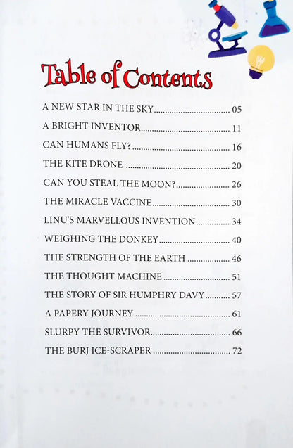 Join Kalpana Chawla on her voyage into space, cheer for Slurgy the stray pup as he challenges Darwin's theory, and be with Jay as he gets his polio vaccine. Follow Linu the honeybee experimenting with nanotechnology, try to measure a donkey’s weight using a scale, and solve the mystery of the disappearing lemonade with Jumpy the monkey!