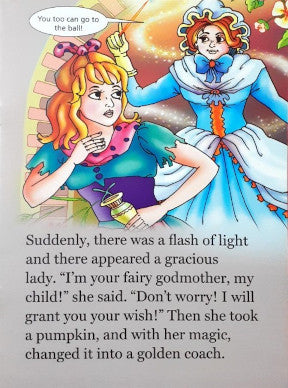 Made to work by her stepmother, Cinderella's life changes when a fairy godmother helps her. Read Cinderella to find out how. Fairy tales are short tales based on folklore in Europe, rich in adventure and suspense. They are also filled with magical characters such as elves, dwarves, gnomes, goblins, mermaids and witches. And their greatest attraction? They are easy to read and end on a happy note. This book is written specifically for the young reader and comes with a glossary of difficult words.