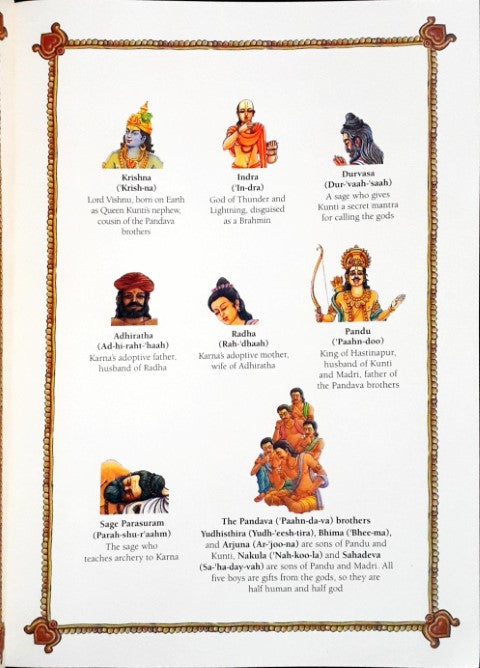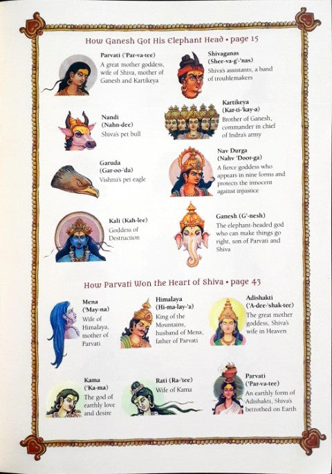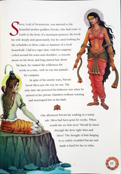 With this full-color illustrated collection of classic tales from India, you will learn about the playful, loyal, strong, loving, and wise gods, goddesses, and heroes of India. You will discover how the deity Ganesh, the remover of obstacles, got his elephant head, how the goddess Parvati won the heart of the great god Shiva, and how the goddess Ganga came to Earth from Heaven in the form of the holy Ganges River. You will discover how Krishna’s childhood as superhero and mischievous boy prepared him to fulfill his destiny as an avatar of the god Vishnu. In two tales drawn from the Ramayana, you will learn about prince Ram and his victory over the ten-headed demon king Ravana and how the monkey-god Hanuman moved a medicine mountain to save Ram’s brother. In two stories from the famous epic the Mahabharata, you will discover how Karna became the greatest archer in the world to help good triumph over evil and how Arjuna compassionately fought his own cousins to bring peace to the kingdom of Hastinapur.