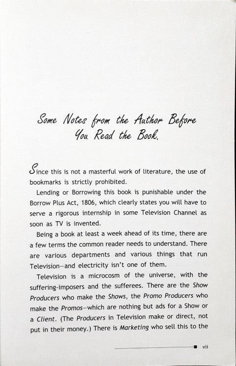 A story of four friends working in Television becomes the story of Television. Grass(from a kid's channel), Bass(Music), Crass(General Entertainment) and Farce(News), meet Mass in a bar and a new reality show called Television begins.