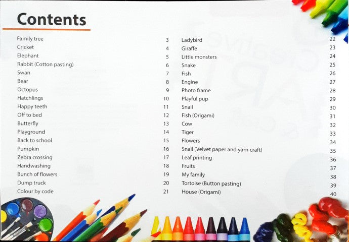 This book is especially designed to appeal to the imagination and creativity of little kids to develop their interest in art. The objective is to allow kids to have fun with colours and at the same time develop their motor skills. The book contains a varied range of art and craft activities including thread art, origami, finger printing, thumb printing, hand printing, paper tearing and pasting, cotton and yarn pasting, drawing in grids, paper quilling, recycled crafts, portraits and many more. With their original and inventive art activities, these books will help children discover the artist within and push their creative boundaries.