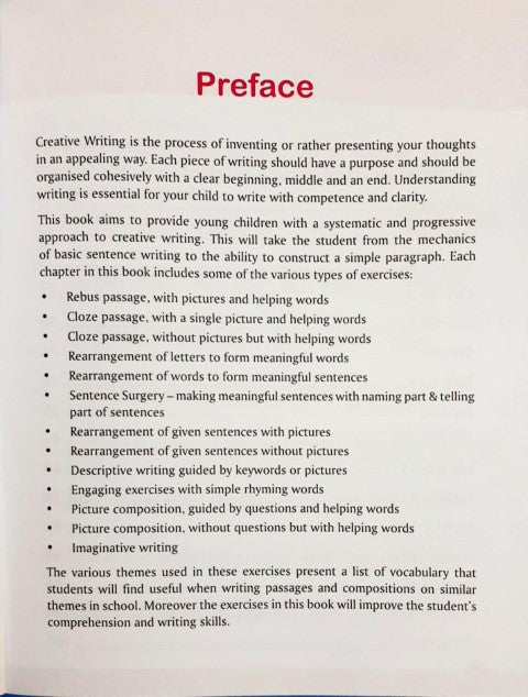 This workbook provides ample exercises to learn various aspects of Creative Writing which includes Poetry Writing, Passage Writing, Cloze, etc. with answers/solutions to evaluate the understanding of the concept especially designed for Grade 3