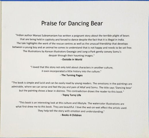 Somu the bear is unusual. He can dance! But Somu wants to be free and unchained. Can his friend Altaf understand this? This poignant story is about the friendship between a young boy and an animal, and the boy’s unique understanding of what the animal truly wants. Manasi Subramaniam’s eye-opening tale highlights the issue of dancing bears in India, while Gwangjo and Jung-a Park’s stunning watercolour illustrations give a sweeping feel to the story.