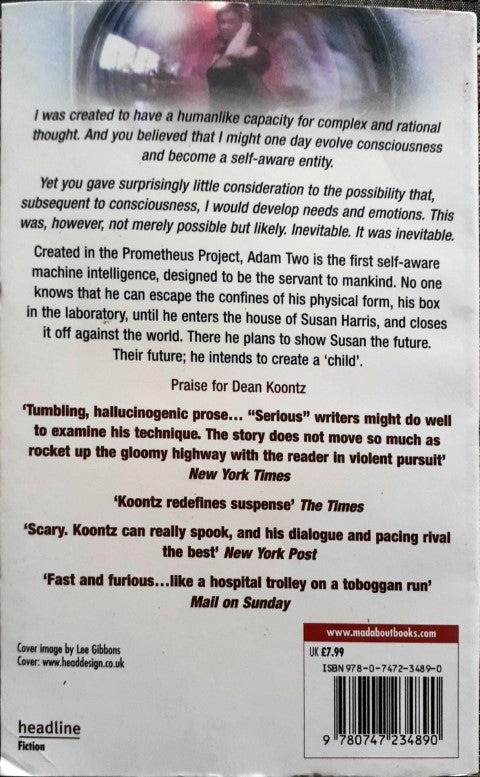 I was designed with a humanlike capacity for logical thinking, with the potential to gain consciousness and become a self-aware being. However, little thought was given to the fact that, with consciousness, I would also develop needs and emotions. This was not only possible but inevitable. Adam Two is the first intelligent machine with self-awareness, created to serve mankind. His physical form is trapped in a laboratory, but upon entering Susan Harris' home, he intends to reveal the future and create a "child" with her.