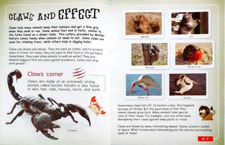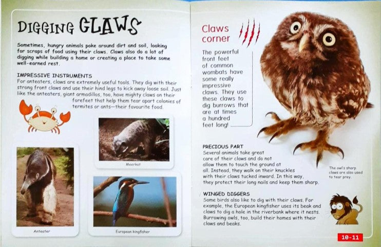 Claws as combs, cutlery, daggers or diggers. Talons that help in gripping to those that strike terror in the hearts of enemies. Pincers that slice through skin and those that help walk on water. This book introduces you to the amazing and amusing world of claws.