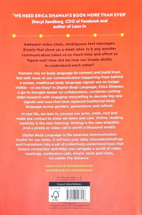 Email replies that show up a week later. Video chats full of “oops sorry no you go” and “can you hear me?!” Ambiguous text-messages. Weird punctuation you can’t make heads or tails of. Is it any wonder communication takes us so much time and effort to figure out? How did we lose our innate capacity to understand each other? Humans rely on body language to connect and build trust, but with most of our communication happening from behind a screen, traditional body language signals are no longer visible -- or are they? In Digital Body Language , Erica Dhawan, a go-to thought leader on collaboration and a passionate communication junkie, combines cutting edge research with engaging storytelling to decode the new signals and cues that have replaced traditional body language across genders, generations, and culture. In real life, we lean in, uncross our arms, smile, nod and make eye contact to show we listen and care. Online, reading carefully is the new listening. Writing clearly is the new empathy. And a phone or video call is worth a thousand emails. Digital Body Language will turn your daily misunderstandings into a set of collectively understood laws that foster connection, no matter the distance. Dhawan investigates a wide array of exchanges―from large conferences and video meetings to daily emails, texts, IMs, and conference calls―and offers insights and solutions to build trust and clarity to anyone in our ever changing world.