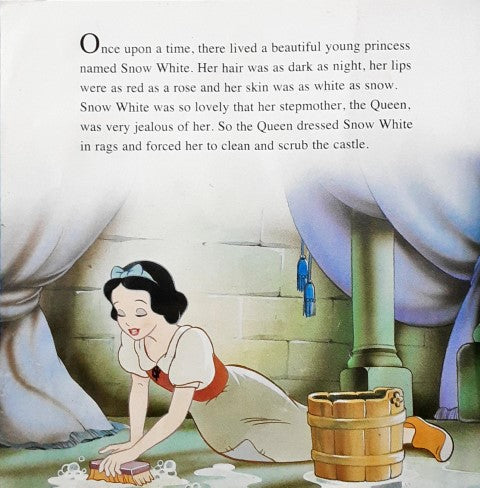 Join Snow White and her best friends the Seven Dwarfs in this legendary Disney story. Can they defeat her eveil stepmother and prove that true love really does conquer all? Bottom corner of 1 page is torn