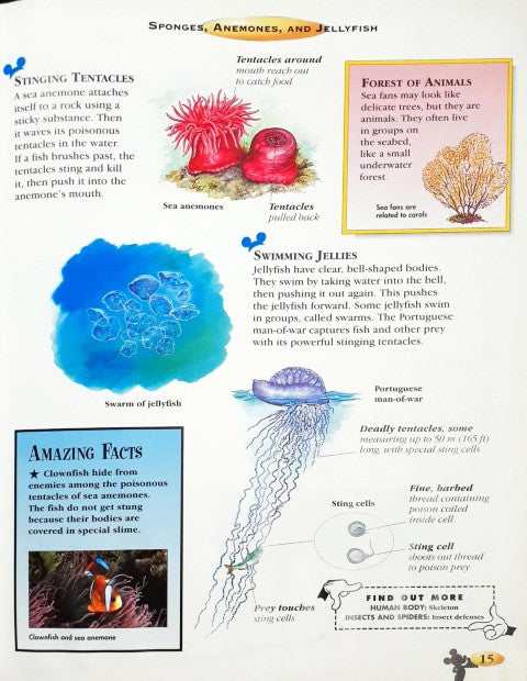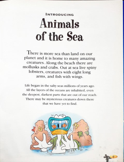 Mickey, Minnie, Donald, Daisy, Goofy and Pluto are ready to take you on an adventure ride through the world of learning. Discover the secrets of science, nature, our world, the past and much more. Climb aboard and enjoy the ride. There is more sea than land on our planet and it is home to many amazing creatures. Along the beach there are mollusks and crabs. Out at sea live spiny lobsters, creatures with eight long arms and fish with wings. Life began in the salty seas millions of years ago. All the layers of the oceans are inhabited, even the deepest, darkest parts that are out of our reach. There may be mysterious creatures down there that we have yet to find.