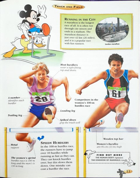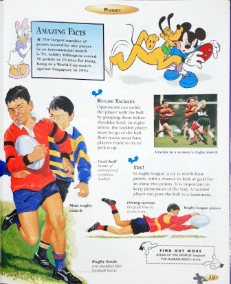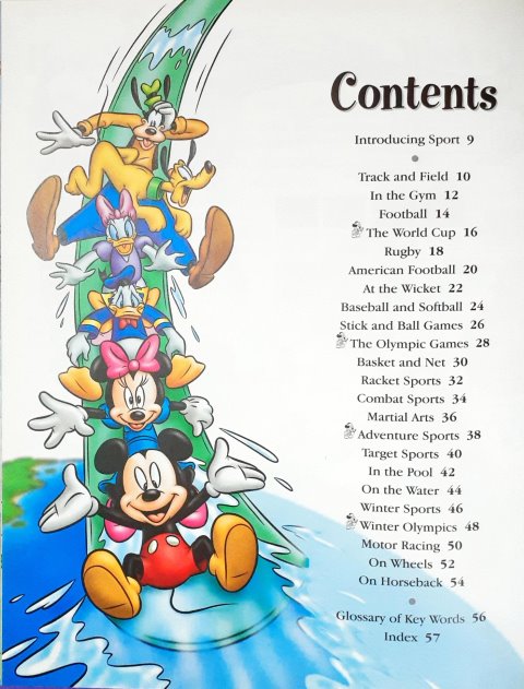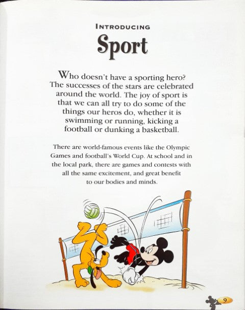 Mickey, Minnie, Donald, Daisy, Goofy and Pluto are ready to take you on an adventure ride through the world of learning. Discover the secrets of science, nature, our world, the past and much more. Climb aboard and enjoy the ride. Who doesn’t have a sporting hero? The successes of the stars are celebrated around the world. The joy of sport is that we can all try to do some of the things our heros do, whether it is swimming or running, kicking a football or dunking a basketball. There are world famous events like the Olympic Games and football's World Cup. At school and in the local park, there are games and contests with all the same excitement and great benefit to our bodies and minds.