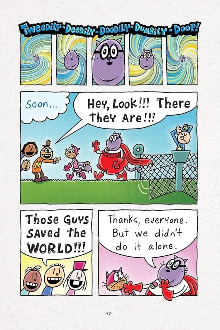 This inspiring and hilarious story explores the incredible power of belief, confidence, self-awareness, and integrity—all wrapped in Dav Pilkey’s trademark humor and action-packed artwork.
