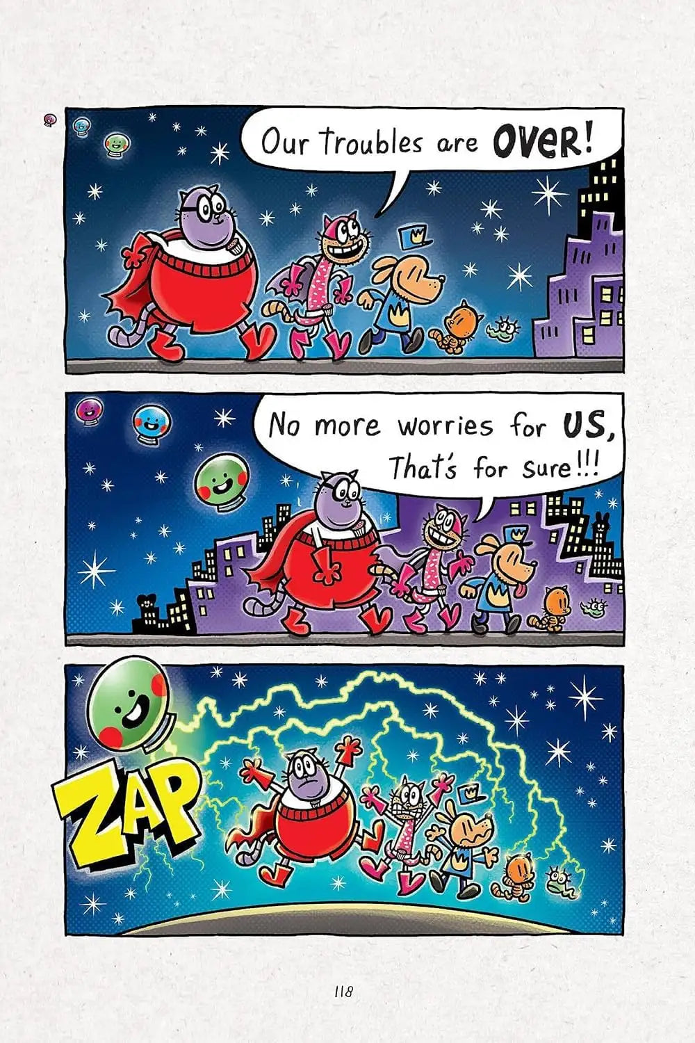 The fun comes to a sudden stop when the mischievous Space Cuties From Space return, turning the city upside down. Dog Man (aka Scarlet Shedder), Commander Cupcake, Sprinkles, Mecha Molly—and especially Big Jim—must figure out what’s gone wrong.