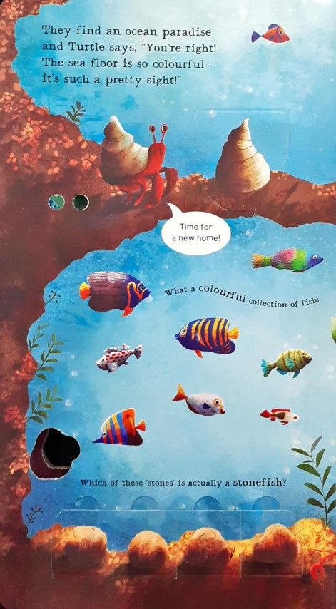 Accompany Turtle on a mesmerizing journey as he delves into the ocean's depths, venturing further and further - what astonishing revelation awaits him at the ocean's floor? With interactive flaps to lift and enchanting peek-through holes, an array of treasures awaits your attention, inviting you to observe, tally, and explore every step of the way.