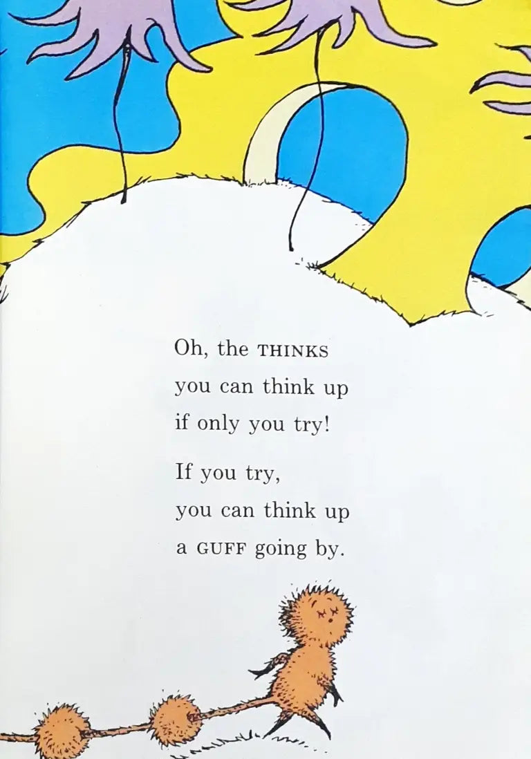 Young readers will delight in Oh, the Thinks You Can Think! which celebrates the imagination and encourages young readers to think... about thinking! "Think left and think right and think low and think high. Oh, the Thinks you can think up if only you try."