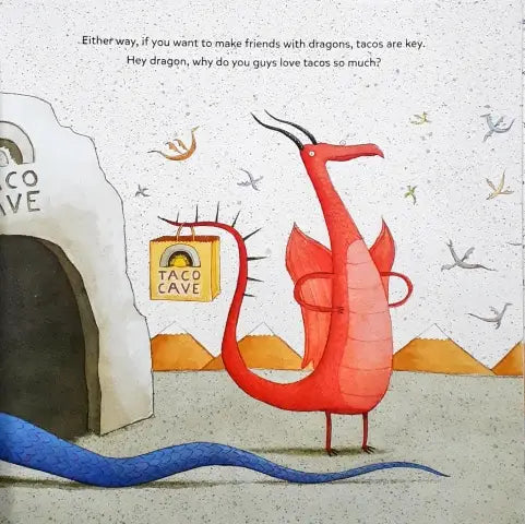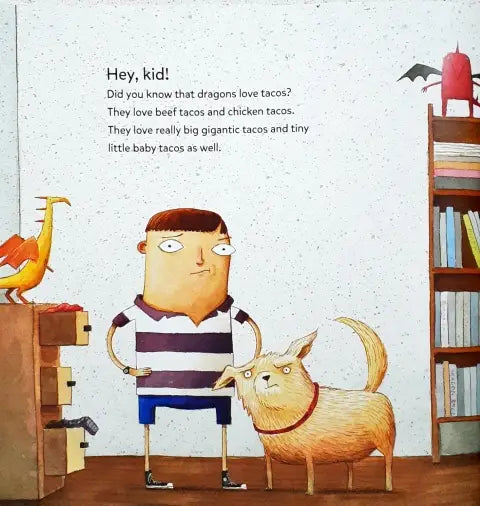 In this delightful tale, dragons are all about one thing: tacos. They're crazy about chicken tacos, beef tacos, colossal tacos, and pint-sized tacos. So, if you're aiming to host a dragon-filled bash, your menu should unquestionably feature an abundance of tacosβbuckets upon buckets of them. However, there's a small hiccup: where there are tacos, there's also salsa. And if a dragon inadvertently indulges in spicy salsa... well, you're in for some red-hot trouble!