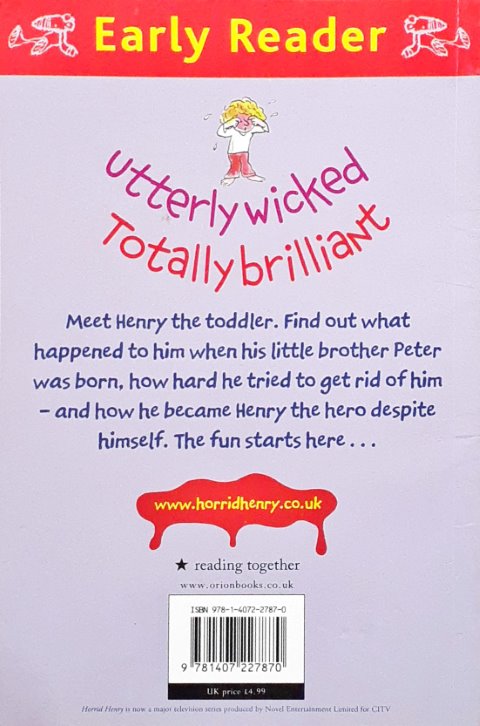 It's a dreadful shock for Horrid Henry when Perfect Peter is born, and despite his best - or worst - efforts, he can't manage to get rid of him. As Peter gets bigger, Henry gets crosser adn crosser, but the day comes when Henry inadvertently finds himself saving Peter and discovers that its rather nice to be a hero.