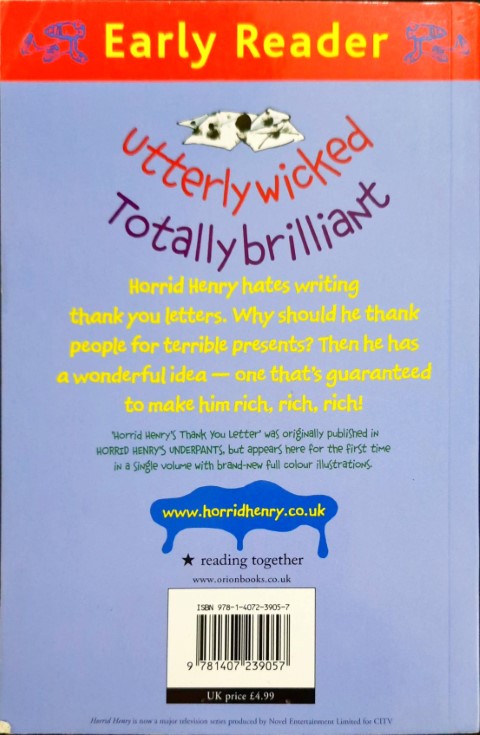 Horrid Henry hates writing thank you letters. Why should he waste his precious time thanking people for terrible presents?