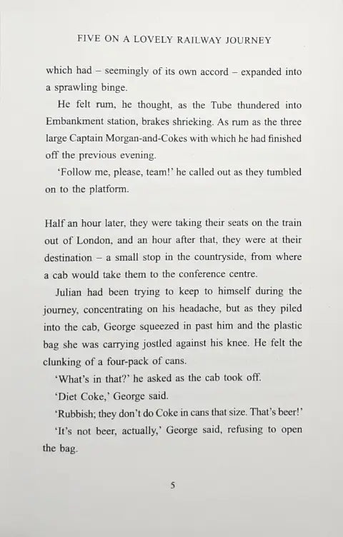 This time, the Famous Five embark on a remarkable adventure, striving to become an even more formidable team. They check into an exciting hotel conveniently located next to a bustling motorway services. Here, they meet a well-intentioned (albeit nervous, perspiring, and downcast) individual who instructs them in various exercises aimed at enhancing their teamwork. However, there's a twist. Mysterious messages start appearing through the hotel's dumbwaiter, hinting at secret rendezvous. Is there a covert smuggling operation underway? Or could it be that Shelly from Production is entangled in a romantic affair with Postroom Luke? The answers to these mysteries will be revealed in due course.