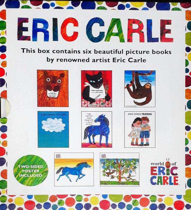 Indulge in the enchanting world of Eric Carle with this delightful box set, comprising six exquisite picture book editions. Dive into the captivating tales of "1,2,3 to the A Counting Book," "Today is Monday," "Slowly Slowly Slowly said the Sloth," "Little Cloud," "The Artist Who Painted A Blue Horse," and "Friends." This collection also features a special two-sided poster for added visual delight. The compact and perfectly proportioned portable box set is a must-have for the libraries of Eric Carle enthusiasts, both young and old, making it an essential addition to the literary treasures of all ages.