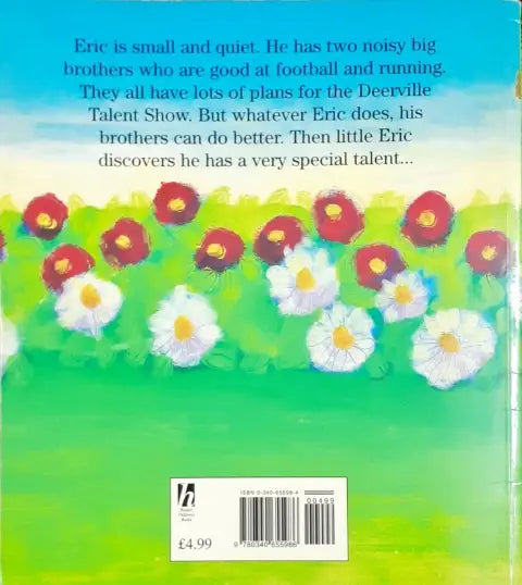 Eric is small and quiet. He has two noisy big brothers who are good at football and running. They all have lots of plans for the Deerville Talent Show. But whatever Eric does, his brothers can do better. Then little Eric discovers he has a very special talent.