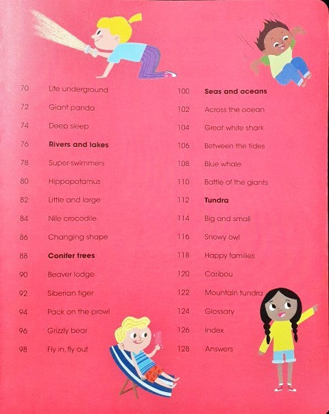 Our planet is home to more than 8 million different types of animals. From tiny hummingbirds to the gigantic blue whale plus humans like us. Travel by land, sea and air to discover the world of animals. Start your exciting journey now. Travel around the world and learn the facts about amazing animals that live everywhere from icy polar regions to rainforests and deserts. Complete activities, puzzles, mazes and more on your incredible journey of discovery. Few pages are already filled.